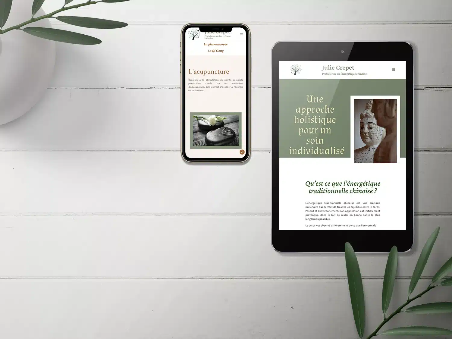 Julie, infirmière de formation et praticienne certifiée en médecine traditionnelle chinoise, souhaitait un site professionnel pour présenter son activité et ses différentes techniques de soin.